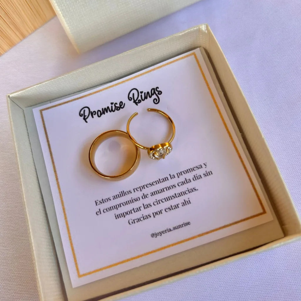 Anillo de promesa con baño de acero, el anillo de mujeres ajustable el de chico es por talla
