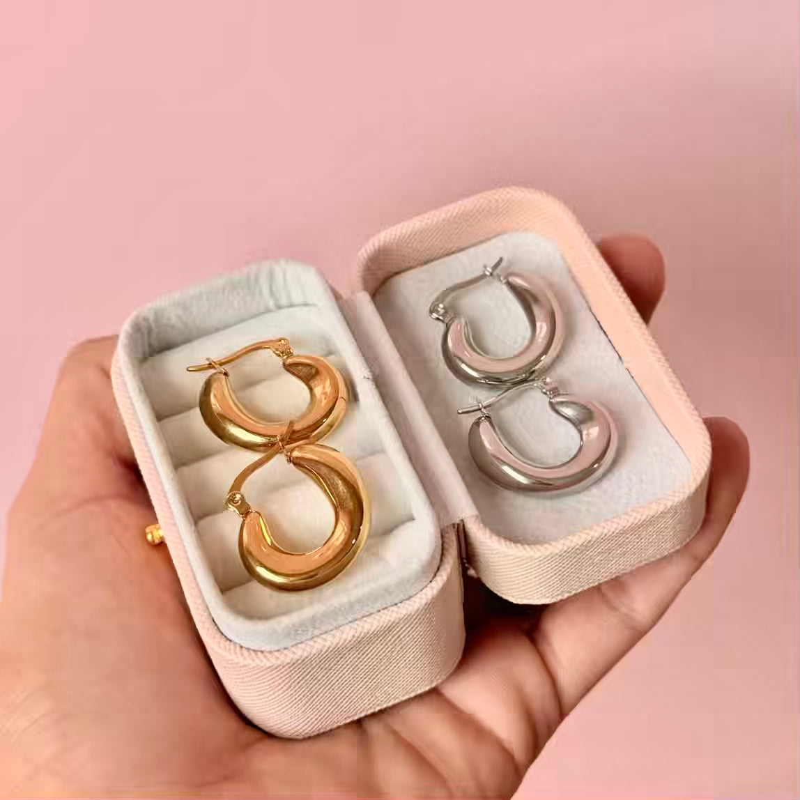 Un estilo único y diferente, argollas asimétricas, de acero inoxidable.