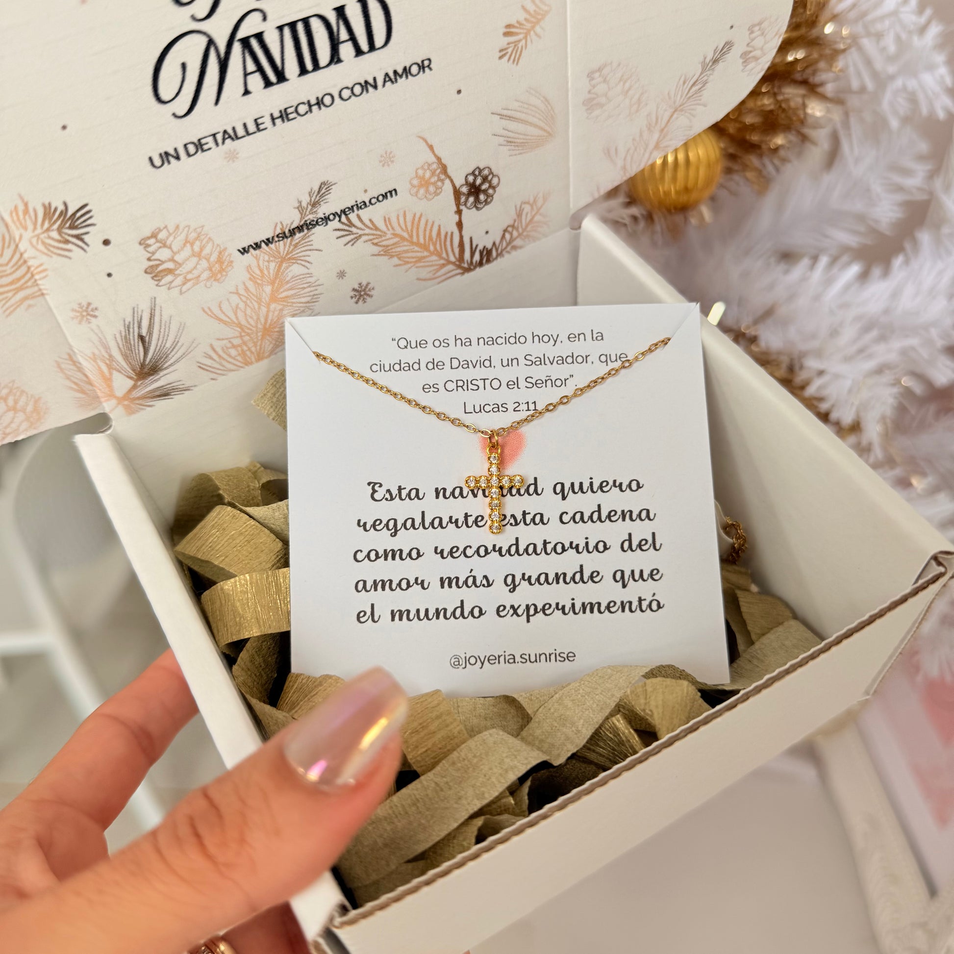 Un regalo intencional para regalar el verdadero significado de la navidad. Cadena acero dije bañado en oro