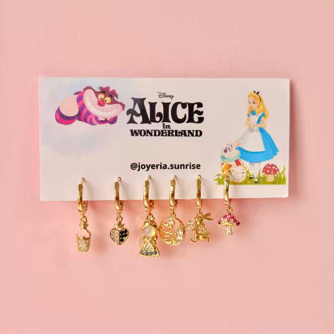 Hoops tematicos de Alicia bañados en oro